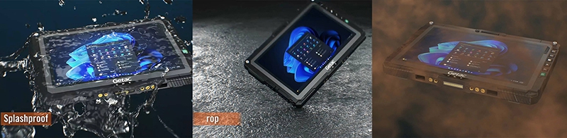 IP66 級別的防塵防水 是它的基本功。這意味著從1.8米的高度跌落、經受高壓水柱的沖刷,或是暴露在沙塵環境中,都無法對它造成實質性傷害。所有接口都有嚴密的防水蓋保護,機身四角包裹著厚實的減震材料,以平板計算機模式通過高達1.8公尺的防摔測試,并能夠在 -29°C 至 63°C (-20°F 至 145°F) 的操作溫度中運作,在各種情況下都能安心使用。這種可靠性和扎實的用料,是消費級產品無法比擬的。