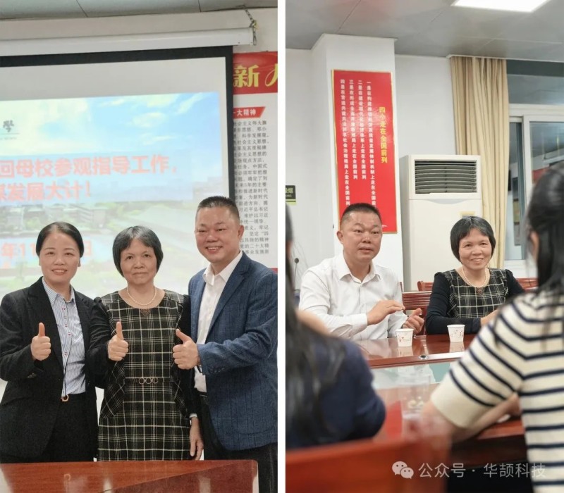 面對學校嶄新的面貌,他深有感觸,不禁回想起當年在此學習時的點滴往事,與當年的恩師鄭老師久別重逢,溫馨的畫面生動詮釋了華頡科技“以人為本、尊師重道”的文化理念。