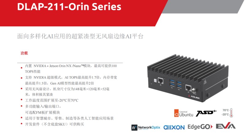 以華頡科技代理的凌華 DLAP-211-Orin 系列(Edge AI 平臺)為代表,配合強大的 PCIe 圖像采集與擴展線,能夠承接多路視覺接入與高并發邊緣推理。它讓機器人不僅“想得快”,更能“看得準”,真正實現了具身智能的現場實時響應。