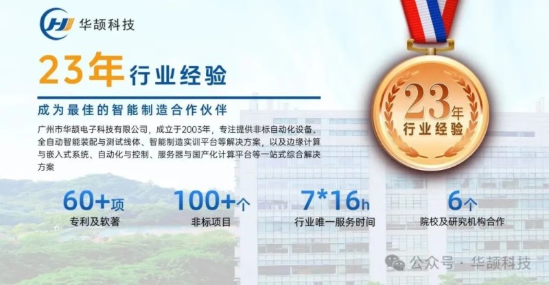 華頡科技成立于 2003 年,總部位于廣州科學城,長期深耕智能制造領域,已獲國家級高新技術企業、專精特新中小企業、瞪羚企業等資質,擁有 60 多項知識產權,具備深厚的技術沉淀與行業認可度。