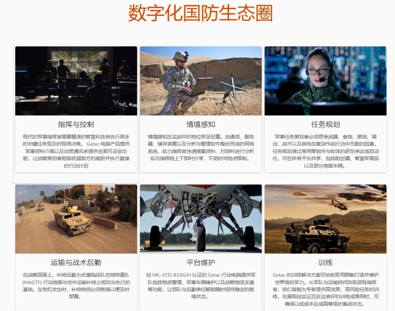Getac 國防行業資料中列出的平臺維護、戰略通訊、緊急救護和平臺分析,正體現了這一點。