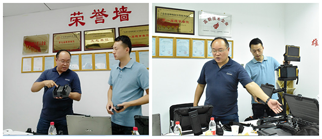 在擺滿Getac機(jī)具儀器的會(huì)議室里,在華頡技術(shù)部人員的協(xié)助下,陳總介紹了Getac最新軍用筆記本電腦產(chǎn)品的功能、特點(diǎn)和客戶加值服務(wù)的內(nèi)容。并非常認(rèn)真的為大家講解和演示各種加值產(chǎn)品的使用方法和特點(diǎn)。他強(qiáng)調(diào),每一款產(chǎn)品都是針對(duì)不同行業(yè)市場(chǎng),不同的應(yīng)用而定制的,產(chǎn)品性能達(dá)到MIL-STD-810G美軍溫帶標(biāo)準(zhǔn)。